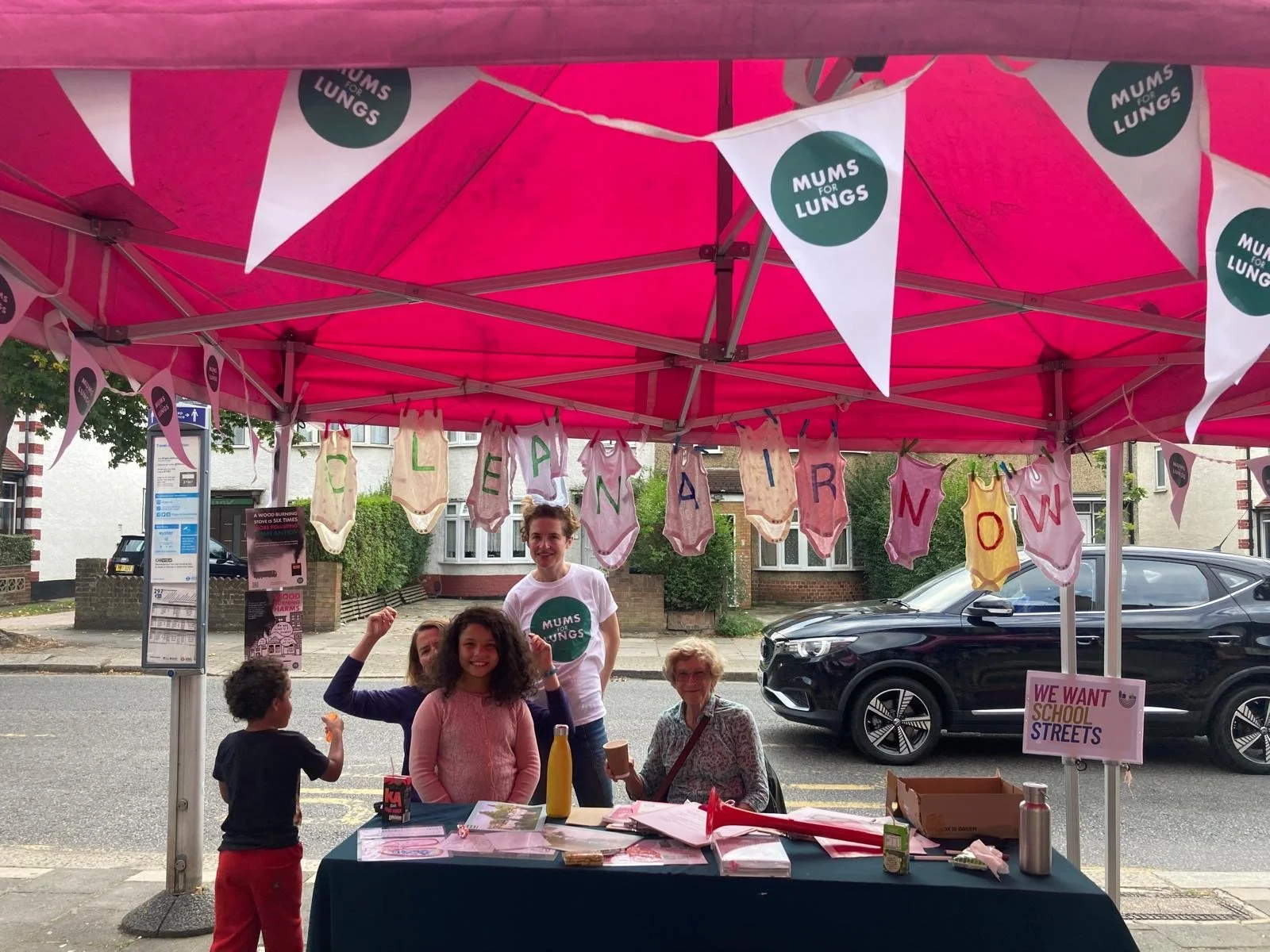 Members and friends of Mums for Lungs in Brent, taking part in our Clean Air Now babygrow campaign.