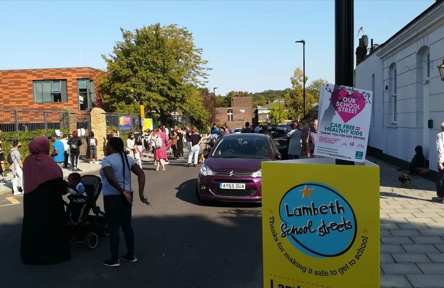 Elmwood Primary School in West Norwood, Lambeth, had a School Street put in place during the Covid19 pandemic. Although it had some effect, it wasn’t sufficient for many families, who wanted more. It was very small, enforced by moveable barriers, which were sometimes ignored by drivers, making it even more dangerous. As the Lambeth School Street programme expanded and parents saw the ambition of other School Streets, they decided to ask for more. They felt that Automatic Number Plate Recognition cameras (ANPR) would be the best way to ensure that drivers wouldn’t drive through the School Street. They held an event, asked the cabinet member for Sustainable Lambeth and Clean Air (who covers transport) to come along, and used the opportunity to show her the issues with enforcement, and explain what they would like. The street is now closed by cameras and families are much happier.